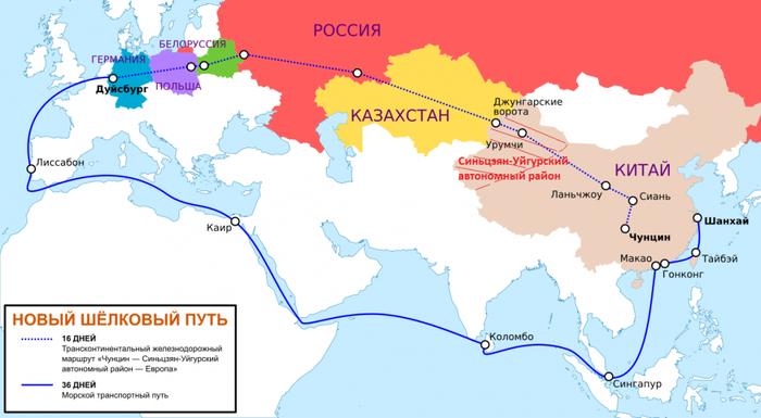 8 мая 2015 года было подписано совместное заявление Президента РФ Владимира Путина и Председателя КНР Си Цзиньпина о сотрудничестве России и Китая в рамках Евразийского Экономического Союза и трансевразийского торгово-инфраструктурного проекта экономического пояса «Шёлковый путь». 13 июня 2015 года был запущен самый длинный в мире грузовой железнодорожный маршрут Харбин — Гамбург из Китая в Германию через территорию России: поезда по этому маршруту будут идти 15 дней, что в 2 раза быстрее, чем по морскому маршруту через Суэцкий канал.