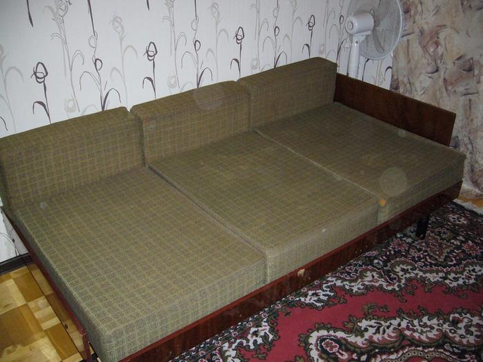 02. Тахта либо диван. Раскладное спальное место, часто с нишей для белья внутри. Подобно «стенке», этот тип мебели стареет крайне уродливо, и после 25+ лет эксплуатации выглядит очень страшно — облупившаяся полировка, обнажившая плохую крошащуюся ДСП-плиту, кривые шаткие ножки, проваленные матрасы с грязной обивкой. Если вы до сих пор спите на советской тахте или диване, то, как любит говаривать Максим Кац http://maxkatz.livejournal.com/profile» target=»_self» rel=»nofollow»>